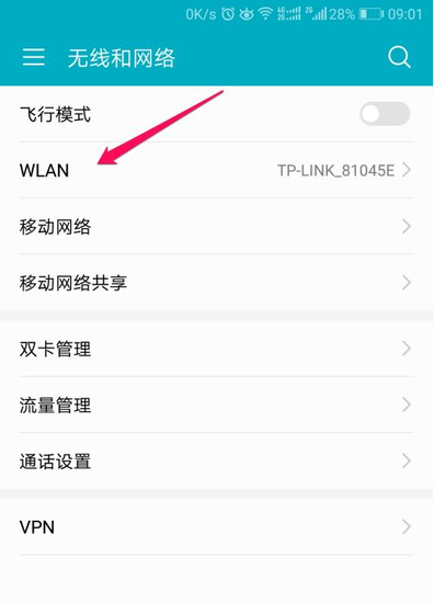 3、接下来我们皆可以看到在“无线和网络”下面有一个“WLAN”的条目了,在“WLAN”条目后面的就是手机已经连接wifi的名称,我们点击这个条目,如下图: